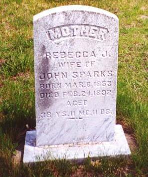 Rebecca J. - wife of John Sparks -born Mar. 6, 1853 died